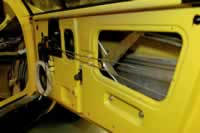 The following sequence of photographic evidence show how the doors are built up on the beams attached to the assembly post. The location of the handle and the routing of the operation rods are shown along with hinge / mounting arrangement.